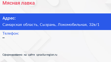 Мясная лавка по адресу Самарская область, Сызрань, Локомобильная, 32в/1 в дальнейшем Организация, размещена в следующих категориях: