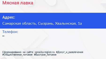 Мясная лавка по адресу Самарская область, Сызрань, Хвалынская, 1а в дальнейшем Организация, размещена в следующих категориях:
