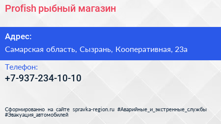 Profish, рыбный магазин по адресу Самарская область, Сызрань, Кооперативная, 23а в дальнейшем Организация, размещена в следующих категориях: