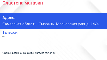 Сластена, магазин по адресу Самарская область, Сызрань, Московская улица, 14/4 в дальнейшем Организация, размещена в следующих категориях: