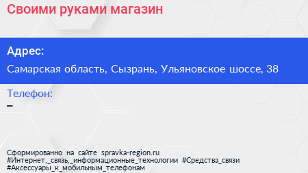 Своими руками, магазин по адресу Самарская область, Сызрань, Ульяновское шоссе, 38 в дальнейшем Организация, размещена в следующих категориях: