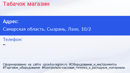 Табачок, магазин по адресу Самарская область, Сызрань, Лазо, 10/2 в дальнейшем Организация, размещена в следующих категориях: