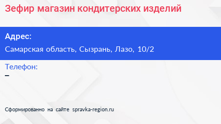 Зефир, магазин кондитерских изделий по адресу Самарская область, Сызрань, Лазо, 10/2 в дальнейшем Организация, размещена в следующих категориях: