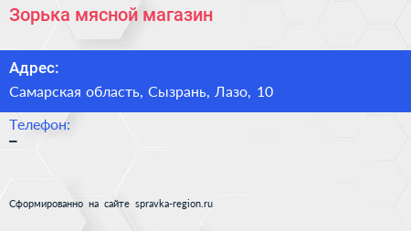 Зорька, мясной магазин по адресу Самарская область, Сызрань, Лазо, 10 в дальнейшем Организация, размещена в следующих категориях: