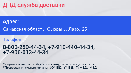 ДПД, служба доставки по адресу Самарская область, Сызрань, Лазо, 25 в дальнейшем Организация, размещена в следующих категориях: