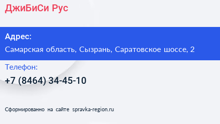 ДжиБиСи Рус по адресу Самарская область, Сызрань, Саратовское шоссе, 2 в дальнейшем Организация, размещена в следующих категориях: