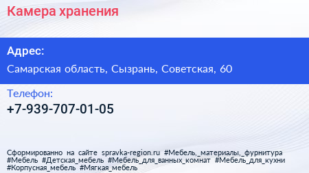 Камера хранения по адресу Самарская область, Сызрань, Советская, 60 в дальнейшем Организация, размещена в следующих категориях:
