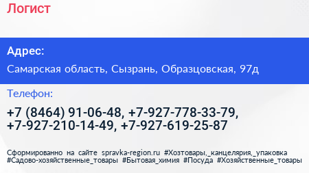 Логист по адресу Самарская область, Сызрань, Образцовская, 97д в дальнейшем Организация, размещена в следующих категориях: