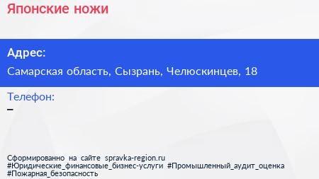 Японские ножи по адресу Самарская область, Сызрань, Челюскинцев, 18 в дальнейшем Организация, размещена в следующих категориях: