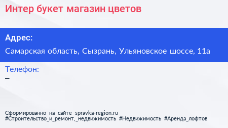 Интер букет, магазин цветов по адресу Самарская область, Сызрань, Ульяновское шоссе, 11а в дальнейшем Организация, размещена в следующих категориях: