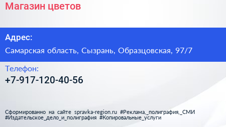 Магазин цветов по адресу Самарская область, Сызрань, Образцовская, 97/7 в дальнейшем Организация, размещена в следующих категориях: