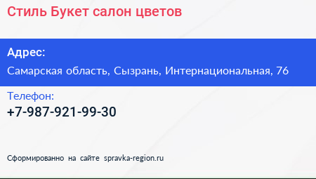 Стиль Букет, салон цветов по адресу Самарская область, Сызрань, Интернациональная, 76 в дальнейшем Организация, размещена в следующих категориях: