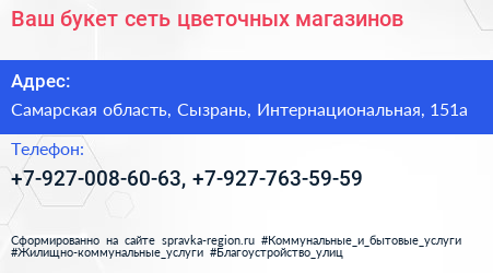 Ваш букет, сеть цветочных магазинов по адресу Самарская область, Сызрань, Интернациональная, 151а в дальнейшем Организация, размещена в следующих категориях: