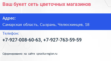 Ваш букет, сеть цветочных магазинов по адресу Самарская область, Сызрань, Челюскинцев, 18 в дальнейшем Организация, размещена в следующих категориях: