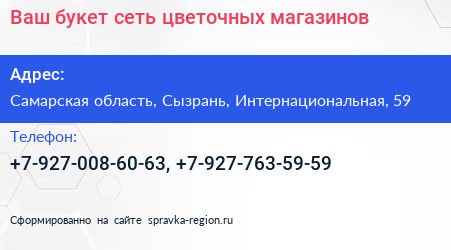 Ваш букет, сеть цветочных магазинов по адресу Самарская область, Сызрань, Интернациональная, 59 в дальнейшем Организация, размещена в следующих категориях: