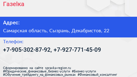 Газеlка по адресу Самарская область, Сызрань, Декабристов, 22 в дальнейшем Организация, размещена в следующих категориях: