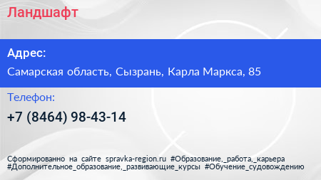 Ландшафт по адресу Самарская область, Сызрань, Карла Маркса, 85 в дальнейшем Организация, размещена в следующих категориях: