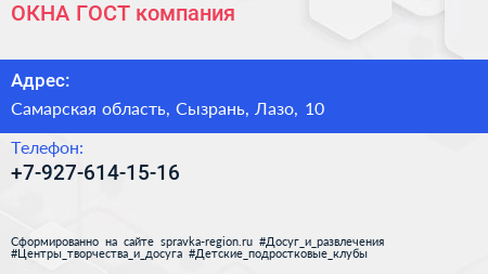 ОКНА ГОСТ, компания по адресу Самарская область, Сызрань, Лазо, 10 в дальнейшем Организация, размещена в следующих категориях: