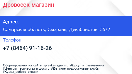 Дровосек, магазин по адресу Самарская область, Сызрань, Декабристов, 55/2 в дальнейшем Организация, размещена в следующих категориях:
