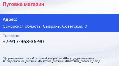 Пуговка, магазин по адресу Самарская область, Сызрань, Советская, 9 в дальнейшем Организация, размещена в следующих категориях: