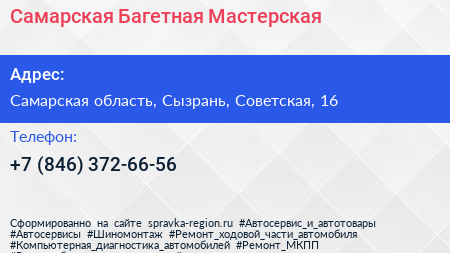 Самарская Багетная Мастерская по адресу Самарская область, Сызрань, Советская, 16 в дальнейшем Организация, размещена в следующих категориях: