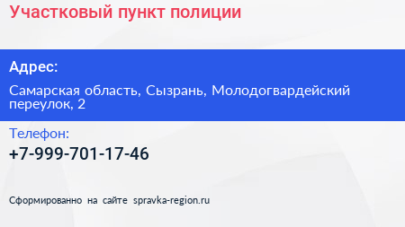 Участковый пункт полиции по адресу Самарская область, Сызрань, Молодогвардейский переулок, 2 в дальнейшем Организация, размещена в следующих категориях: