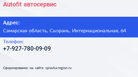 Autofit, автосервис по адресу Самарская область, Сызрань, Интернациональная, 64 в дальнейшем Организация, размещена в следующих категориях: