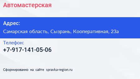 Автомастерская по адресу Самарская область, Сызрань, Кооперативная, 23а в дальнейшем Организация, размещена в следующих категориях: