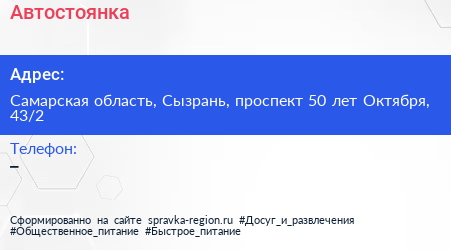 Автостоянка по адресу Самарская область, Сызрань, проспект 50 лет Октября, 43/2 в дальнейшем Организация, размещена в следующих категориях: