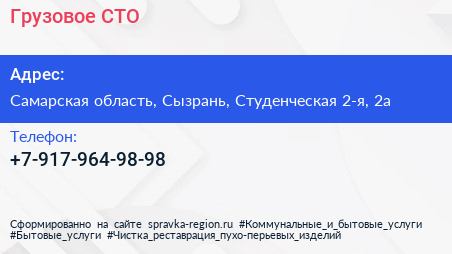 Грузовое СТО по адресу Самарская область, Сызрань, Студенческая 2-я, 2а в дальнейшем Организация, размещена в следующих категориях: