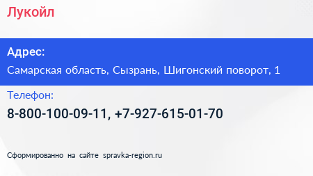 Лукойл по адресу Самарская область, Сызрань, Шигонский поворот, 1 в дальнейшем Организация, размещена в следующих категориях: