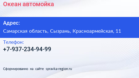 Океан, автомойка по адресу Самарская область, Сызрань, Красноармейская, 11 в дальнейшем Организация, размещена в следующих категориях: