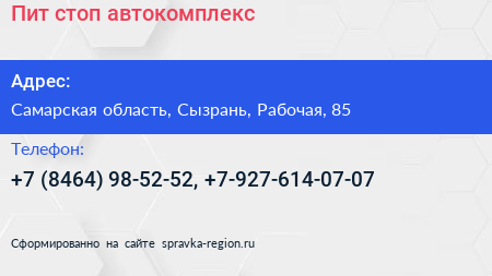 Пит-стоп, автокомплекс по адресу Самарская область, Сызрань, Рабочая, 85 в дальнейшем Организация, размещена в следующих категориях: