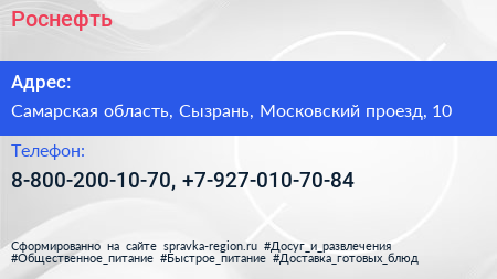 Роснефть по адресу Самарская область, Сызрань, Московский проезд, 10 в дальнейшем Организация, размещена в следующих категориях: