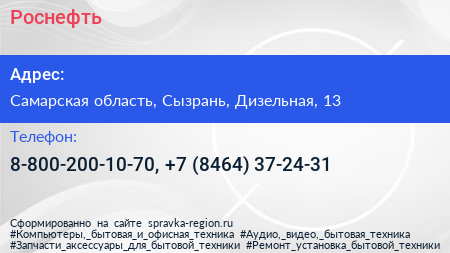 Роснефть по адресу Самарская область, Сызрань, Дизельная, 13 в дальнейшем Организация, размещена в следующих категориях: