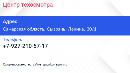 Центр техосмотра по адресу Самарская область, Сызрань, Ленина, 30/1 в дальнейшем Организация, размещена в следующих категориях: