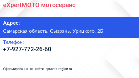 eXpertMOTO, мотосервис по адресу Самарская область, Сызрань, Урицкого, 2Б в дальнейшем Организация, размещена в следующих категориях: