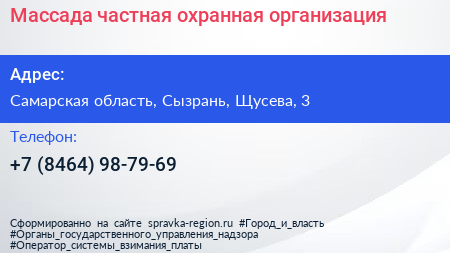 Массада, частная охранная организация по адресу Самарская область, Сызрань, Щусева, 3 в дальнейшем Организация, размещена в следующих категориях: