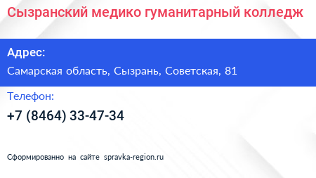 Сызранский медико-гуманитарный колледж по адресу Самарская область, Сызрань, Советская, 81 в дальнейшем Организация, размещена в следующих категориях:
