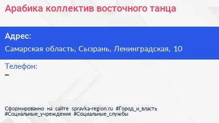 Арабика, коллектив восточного танца по адресу Самарская область, Сызрань, Ленинградская, 10 в дальнейшем Организация, размещена в следующих категориях: