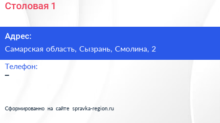 Столовая №1 по адресу Самарская область, Сызрань, Смолина, 2 в дальнейшем Организация, размещена в следующих категориях: