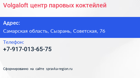 Volgaloft, центр паровых коктейлей по адресу Самарская область, Сызрань, Советская, 76 в дальнейшем Организация, размещена в следующих категориях: