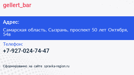 #gellert_bar по адресу Самарская область, Сызрань, проспект 50 лет Октября, 54в в дальнейшем Организация, размещена в следующих категориях: