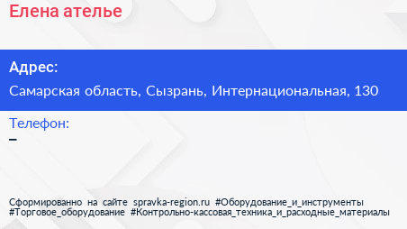 Елена, ателье по адресу Самарская область, Сызрань, Интернациональная, 130 в дальнейшем Организация, размещена в следующих категориях: