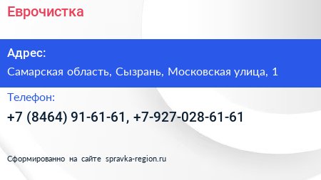Еврочистка по адресу Самарская область, Сызрань, Московская улица, 1 в дальнейшем Организация, размещена в следующих категориях: