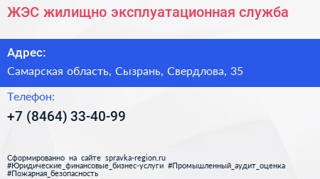 ЖЭС, жилищно-эксплуатационная служба по адресу Самарская область, Сызрань, Свердлова, 35 в дальнейшем Организация, размещена в следующих категориях: