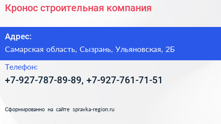 Кронос, строительная компания по адресу Самарская область, Сызрань, Ульяновская, 2Б в дальнейшем Организация, размещена в следующих категориях: