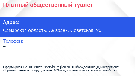 Платный общественный туалет по адресу Самарская область, Сызрань, Советская, 90 в дальнейшем Организация, размещена в следующих категориях: