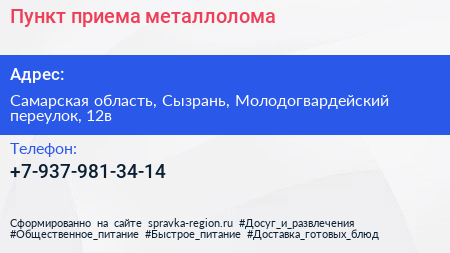 Пункт приема металлолома по адресу Самарская область, Сызрань, Молодогвардейский переулок, 12в в дальнейшем Организация, размещена в следующих категориях: