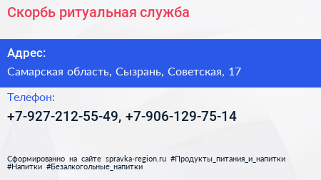 Скорбь, ритуальная служба по адресу Самарская область, Сызрань, Советская, 17 в дальнейшем Организация, размещена в следующих категориях:
